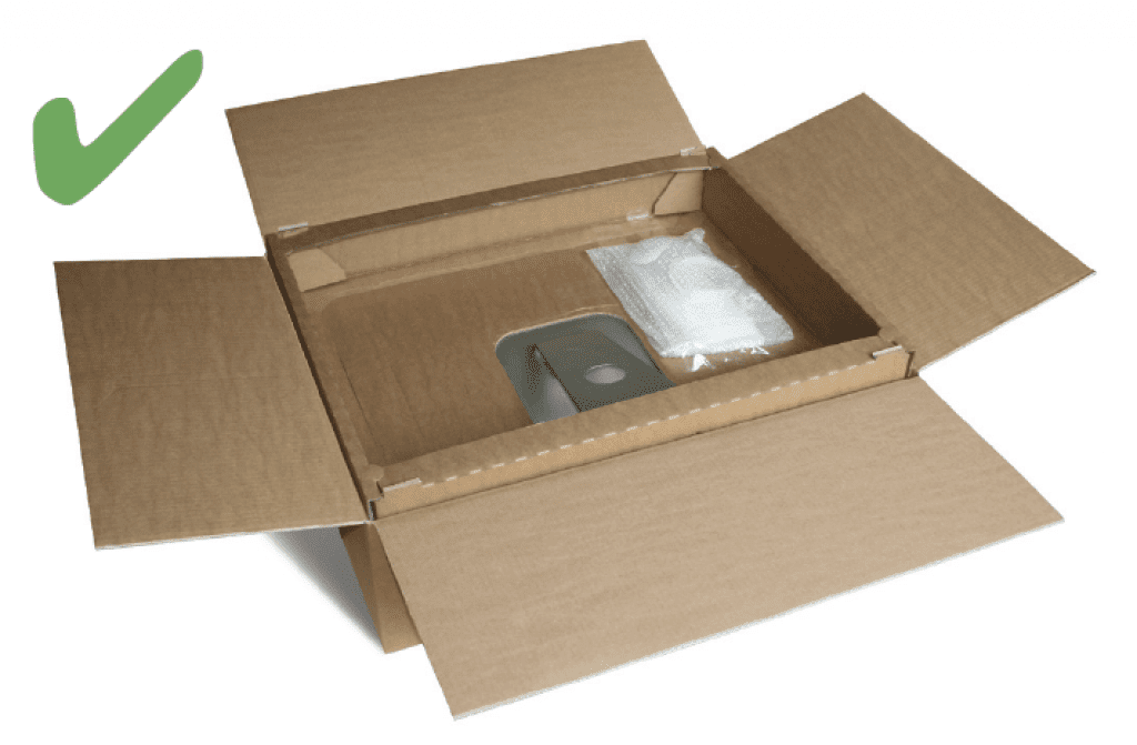 - Als je toebehoren mee terugstuurt (zoals de oplader of muis), plak deze dan goed vast, zodat niet gaan 'zwerven' door de doos. Het tweede losse kartonnen onderdeel dus niet plaatsen zoals de eerste. De iMac komt dan niet klem te zitten en kan beschadigd raken.